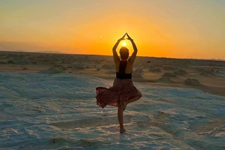 Silhouettes: As the sun rises, the unique formations of the White Desert—like mushrooms and pyramidal rocks—cast dramatic silhouettes against the brightening sky, offering stunning opportunities for capturing the desert’s mysterious shapes.