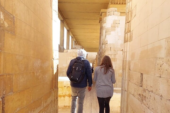 We start With it to understand the development of the Egyptian pyramids , so the first stop at Saqqara will be the Step Pyramid Complex of King Djoser which is 4700 years old , the first Egyptian pyramid ever . Then we will visit the 5th Dynasty Pyramid of King Unas which is inscribed with hieroglyphics from inside , then of Oldest tombs decorated with daily life and funeral ancient scenes 4500 years old . Basic entry ticket included , if you want to enter the step pyramid it require extra ticket .