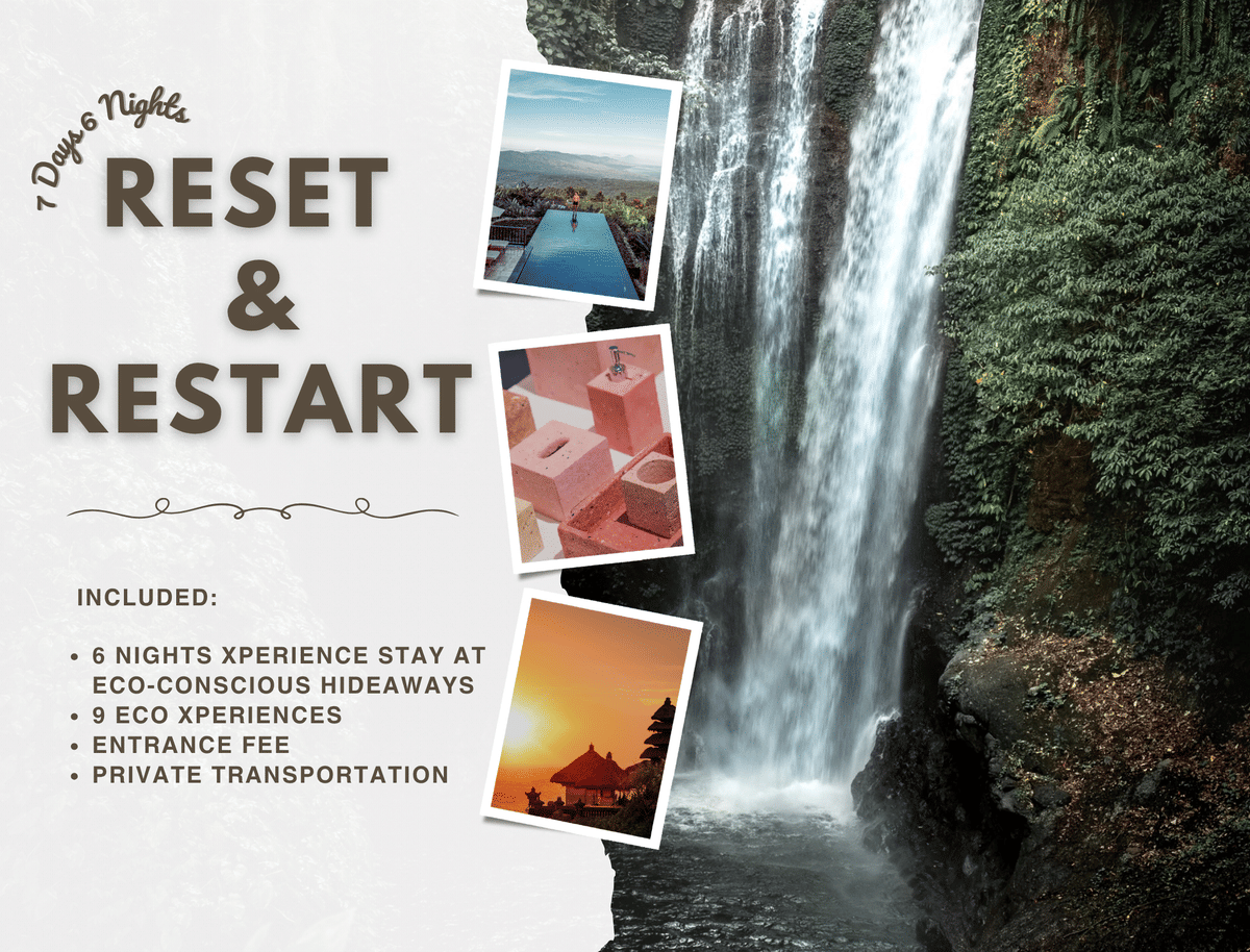 Because healing starts with a pause. Unplug, recenter and start again. Let Bali be your turning point. Your soft reboot—by the sea and under the sky. Trade screen time for sunrise views, inboxes for jungle trails, and endless scrolls for soul-deep stillness. This 7-day journey is a curated escape into nature, wellness, and cultural immersion—designed to help you slow down, reset, and reconnect with what truly matters.