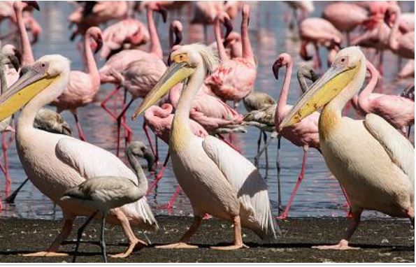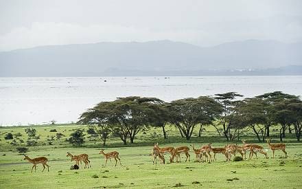 Located in the Great Rift Valley, Lake Nakuru is a shallow, alkaline lake where both lesser and greater flamingos can be found in vast numbers, sometimes literally turning the water pink! The lake varies in size from five to 30 square kilometres – depending on rainfall – and is rich in birdlife; there are 400 resident species on the lake and in the surrounding national park.