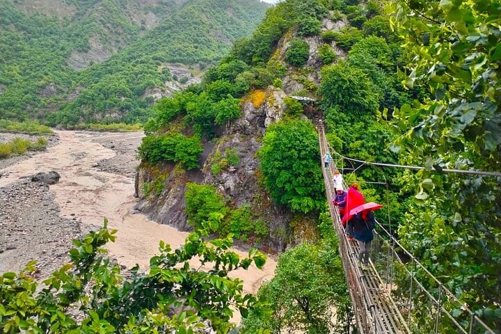 Tour continues to Ismayilli region and next point is Hanging Bridge (Zernava Bridge). From the Yeddi Gumbaz to the bridge is 60 minutes by car at least. You will see the beauty of the nature and the view of the majestic natural canyon and Zernava suspension bridge.