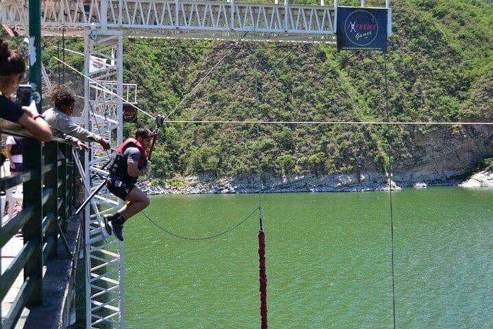 Depending on the selected option (morning or afternoon), a transfer will pick you up at your hotel to go to the Cabra Corral Reservoir, where you will carry out the activities.The following are included: - BUNGEE JUMPING: The jump is performed from a metal ramp mounted on a bridge. You jump from a height of approx. 40 mts, attached to an elastic rope by the ankles. You can choose to touch the water or not. - PUENTING: It is very similar to bungee jumping, with the difference that you will be held by the waist with two dynamic strings, which produces a pendulum movement during the fall. - ZIPLINE: The Zipline rope consists sliding through a rope above the water of 200 metres long, held with a harness from the waist. - RAPPEL: You will be descending by rope, held from the metal ramp, to the water, with an approximate height. of 40 mts. You will choose the speed of descent. After each jump, a boat will be waiting to take you back to the shore. Once all the activities are over, our drivers will take you back to your hotel in Salta.
