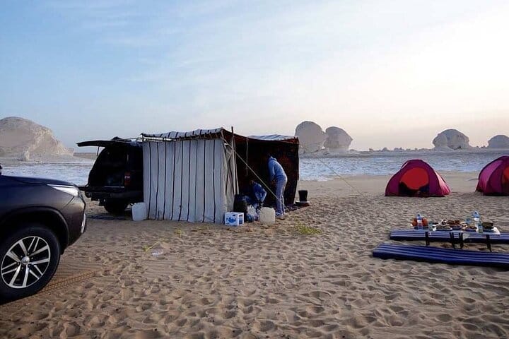 After breakfast moving to cross the valleys [small valley –big valley] – Magic spring [ain el sero ] – having lunch –ain khadra – then to the new white desert having dinner -Bedouin party – make a camp and sleep.