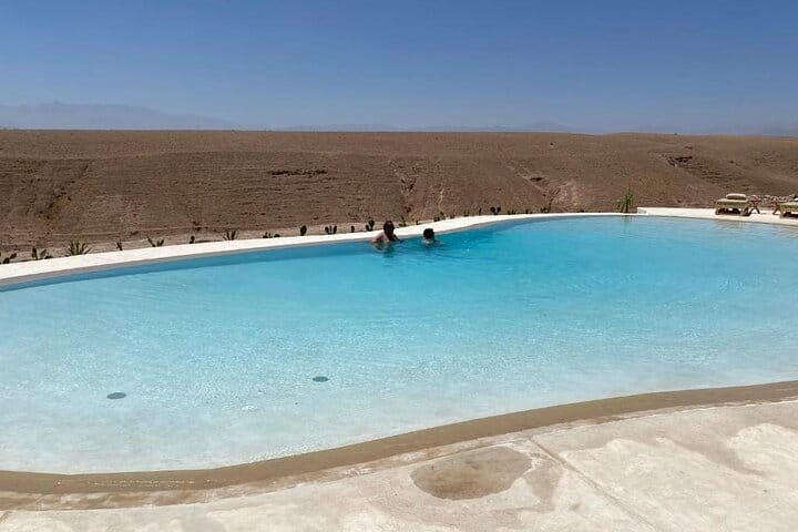 pick up from marrakech at 10:00 am go straight ahead to Agafay desert located about 40 kilometers outside of Marrakech, During this you will enjoy the spectacular views of the atlas mountains and sahara enjoy your delicious meal, swimming and enjoy the warm weather, Agafay Desert is the perfect place that has unique spots for photographers and travelers alike to enjoy clicking camel ride in the Agafay desert, or quad biking and buggies. Don’t’ miss the opportunity to experience how to be alone in the world, and give chance to your eyes to enjoy this beautiful sight.