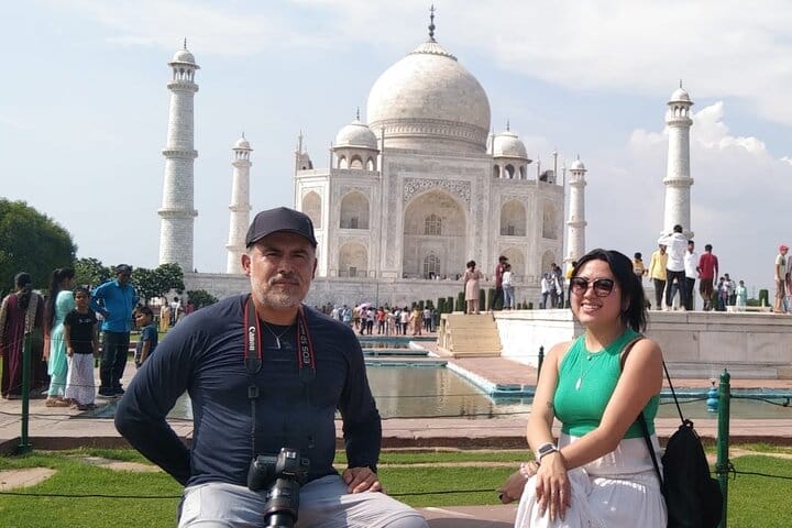 Embark on a 2-hour private Agra Culture Walk. Led by a knowledgeable guide, this immersive experience will take you through the vibrant streets and alleys of Agra. Explore the majestic Agra Fort, a UNESCO World Heritage Site, marveling at its red sandstone architecture and rich Mughal history. Wander through bustling spice markets, immersing yourself in the sights, sounds, and aromas of local life. Visit a 200-year-old sweet shop to sample delectable treats and enjoy an exhilarating auto-rickshaw ride. Conclude the walk at a secret vantage point, offering breathtaking views of the Taj Mahal as the sun sets over the horizon.