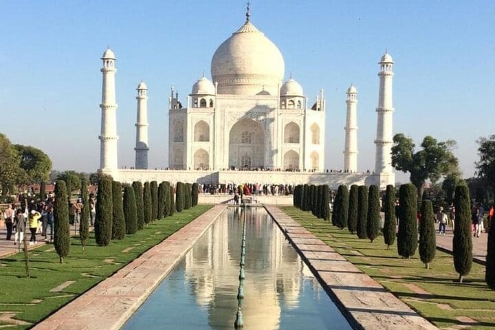 10:30 AM - Visit the Taj Mahal You will start your tour by visiting the Taj Mahal, one of the most famous monuments in the world. Your private guide will take you through the history and significance of this iconic white marble mausoleum, which was built by Mughal Emperor Shah Jahan in memory of his beloved wife Mumtaz Mahal. You will have ample time to explore and take photos.