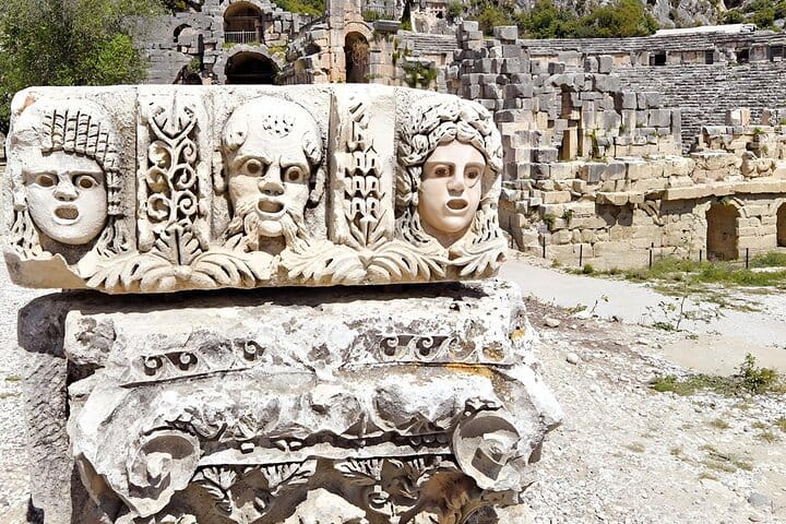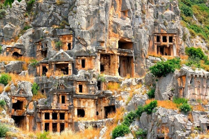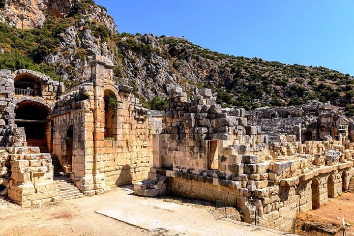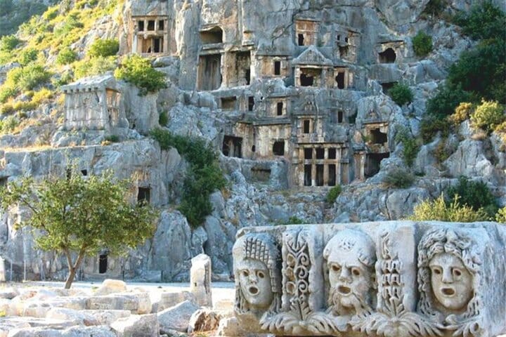 After your scenic boat tour around Kekova, continue your journey back in time with a visit to the nearby ruins of Ancient Myra—one of Turkey’s most remarkable archaeological treasures. Step into history as you explore the grand Roman Theatre, once echoing with the voices of ancient performances, and walk among the hauntingly beautiful Lycian Rock Tombs carved high into the cliffs.