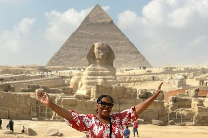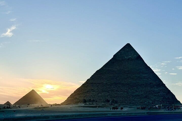 Visit the famed Giza Pyramids on this private half-day tour, which includes a camel ride near the pyramids, a light lunch, and See the Great Pyramid of Giza, the oldest of the three pyramids, the Sphinx, and so much more, with 2-way transfers from your Cairo or Giza hotel. Your guide is happy to take pictures as you explore.