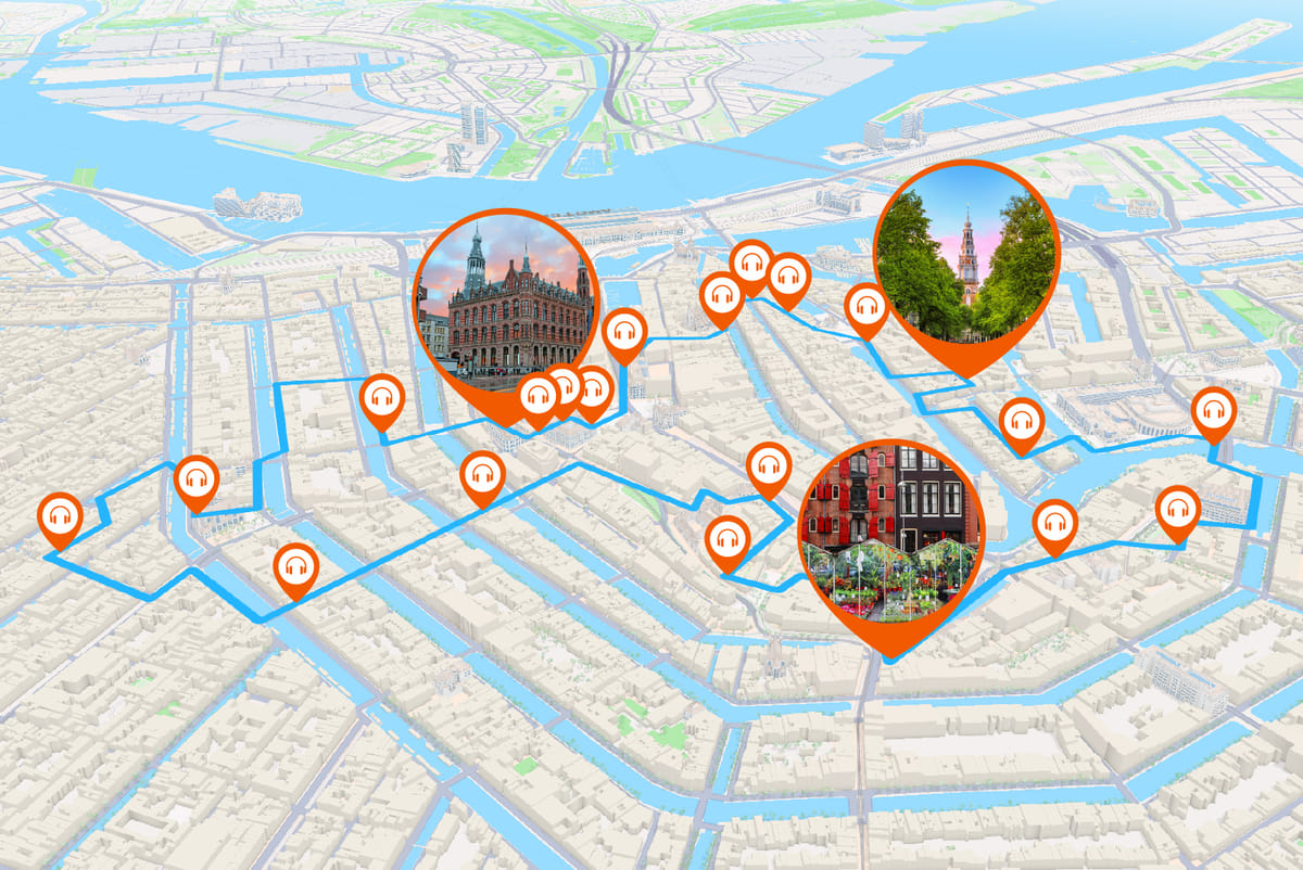 Experience Amsterdam differently with our unique self-guided tour and let yourself be surprised at every bridge, canal, and picturesque alley! At your own pace, without any time constraints, dive into the heart of the Dutch capital along a route designed to reveal the full beauty, history, and secrets of the city. Guided by a 3D interactive map and immersive audio commentary, you will discover not only the must-see landmarks but also hidden treasures, far from the classic tourist paths.