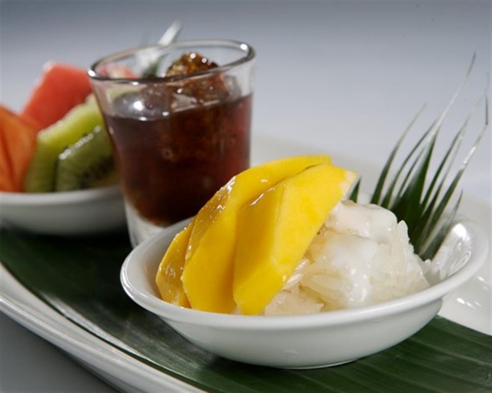 Lychee and Green Mango Thai Sherbet, Young Ginger, Syrup, Crispy Shallot