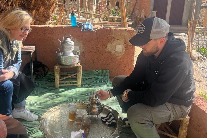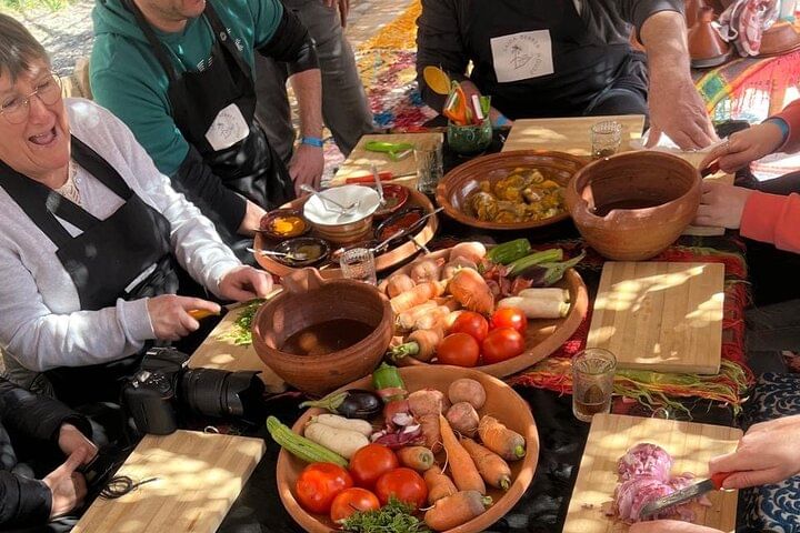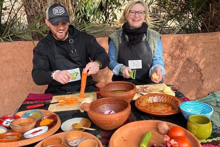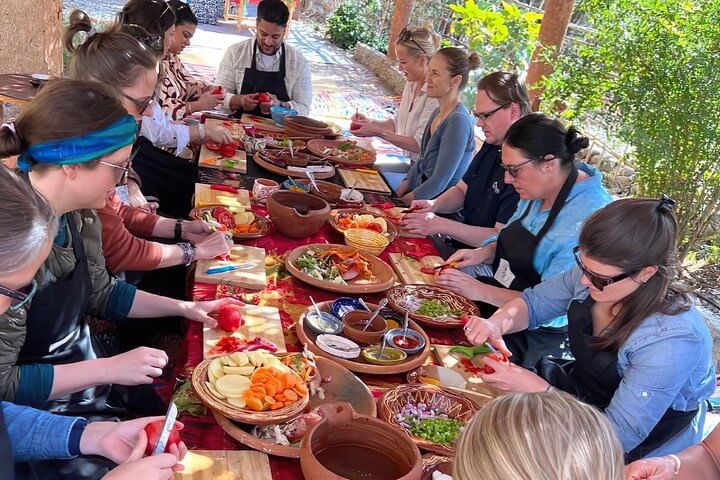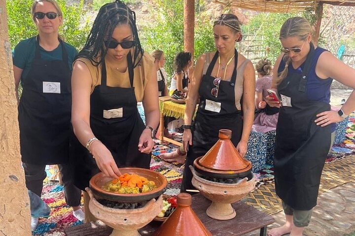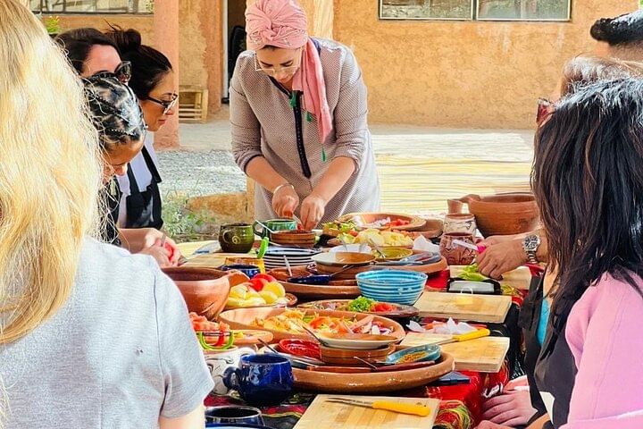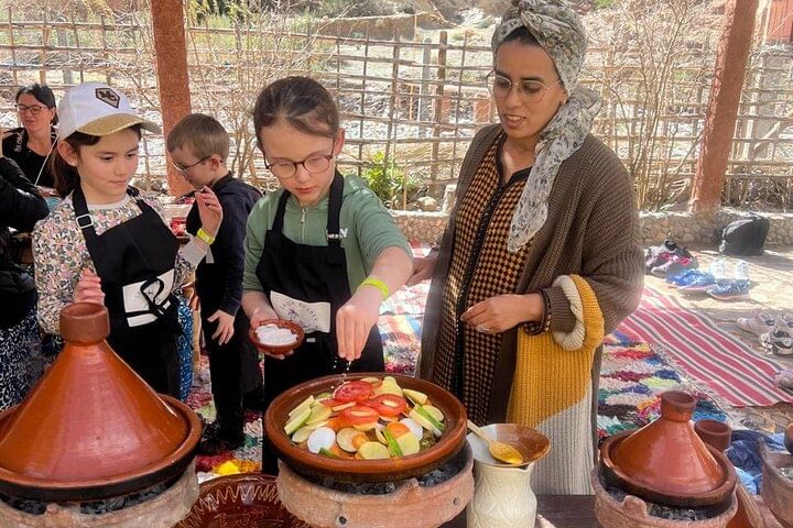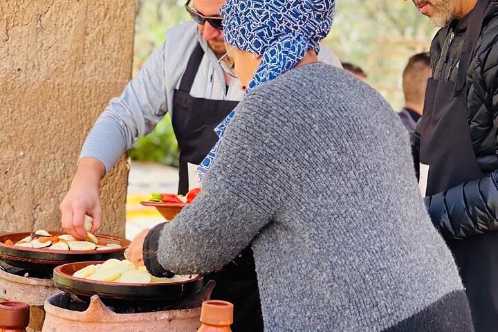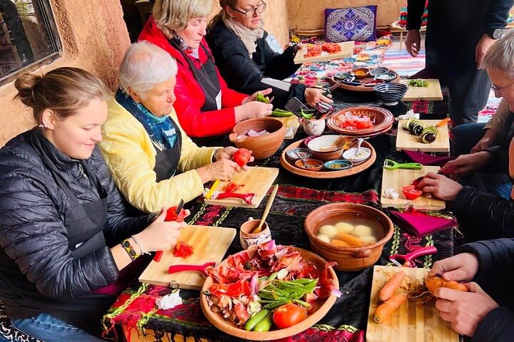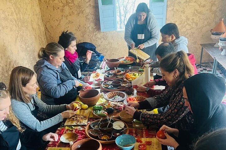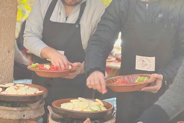 From your accommodation in Marrakech, a driver will take you to his traditional home, nestled at the foot of the mountains. There, Saida will welcome you warmly and introduce you to the secrets of Amazigh cuisine, preparing iconic dishes like tagine, with fresh and local ingredients.
