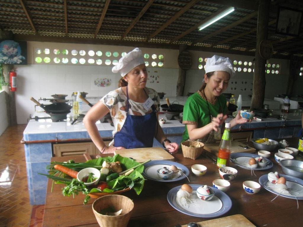After being collected at your Chiang Mai hotel you will be taken, by van, to Nong Hoi local market. During your 40 minutes here you will learn about the local vegetation (quite interesting, indeed!) and also purchase the fresh ingredients (chicken, prawns, herbs & vegetables) required for the cooking class.