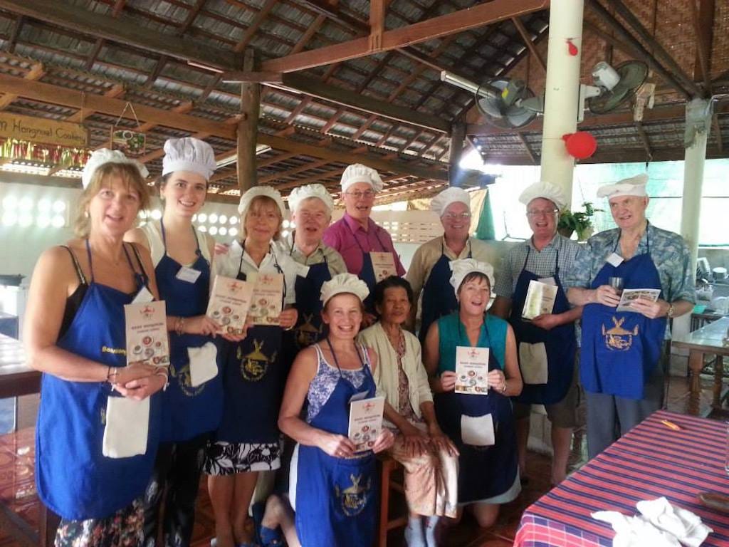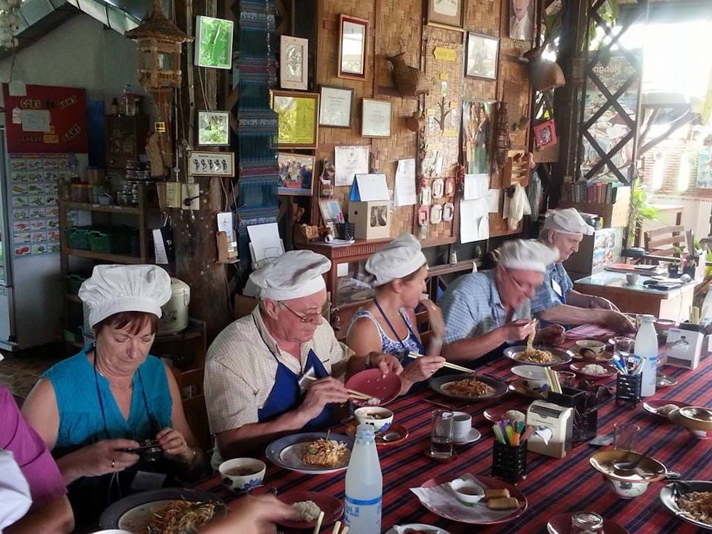 Continue onto Baan Hong Nual, situated on Chiang Mai – Lampang Road, only about 15 minutes away from the market. After a brief introduction at Baan Hong Nual's open kitchen about Lanna Thai style food, all students will be then given aprons and headdresses as cooking uniforms. You are then set to begin with the 1st menu, learning about preparation, seasonings, utensils and, of course, cooking. After the 1st menu is done, you’ll be given time to check how delicious your food is. Your English instructors will then have you confidently cooking the 2nd, 3rd, and 4th dishes.