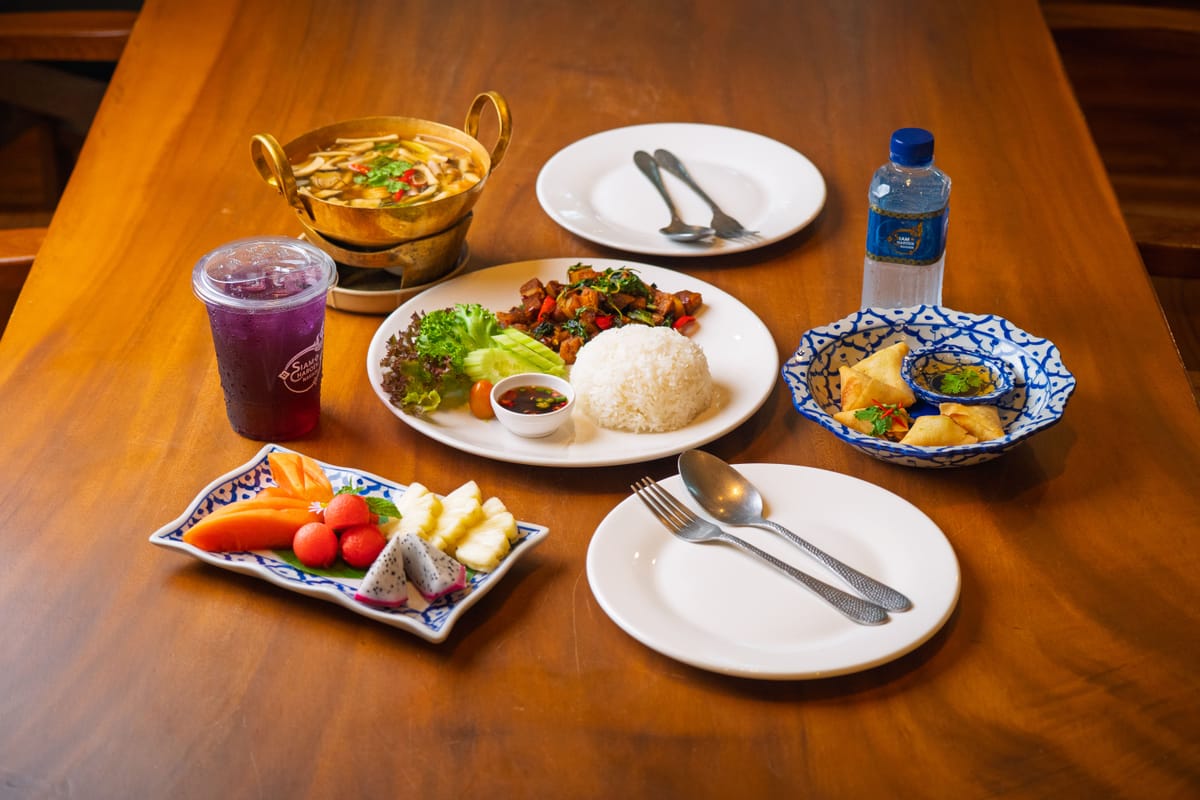 - Full‑course authentic Thai lunch at 150‑year‑old riverside house café (click to see menus)