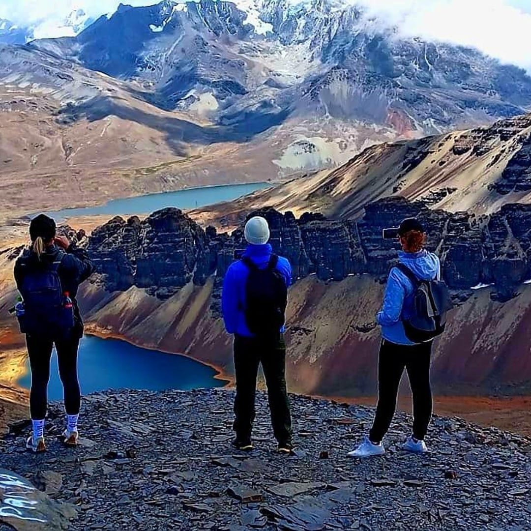 Chacaltaya (5,421m): This glacier is one of the highest in the world, and take in the spectacular panoramic views of the Andes and Lake Titicaca in the distance. Enjoy some time to walk around, acclimate to the altitude, and capture stunning photos of the rugged mountain terrain. If weather conditions allow, you may hike a short distance for an even more rewarding view. From here you can see the Lagunas de Colores, a series of vibrant, multi-colored lakes that reflect the ever-changing light of the Bolivian sky. These lakes, surrounded by mountains, create a captivating and peaceful atmosphere.