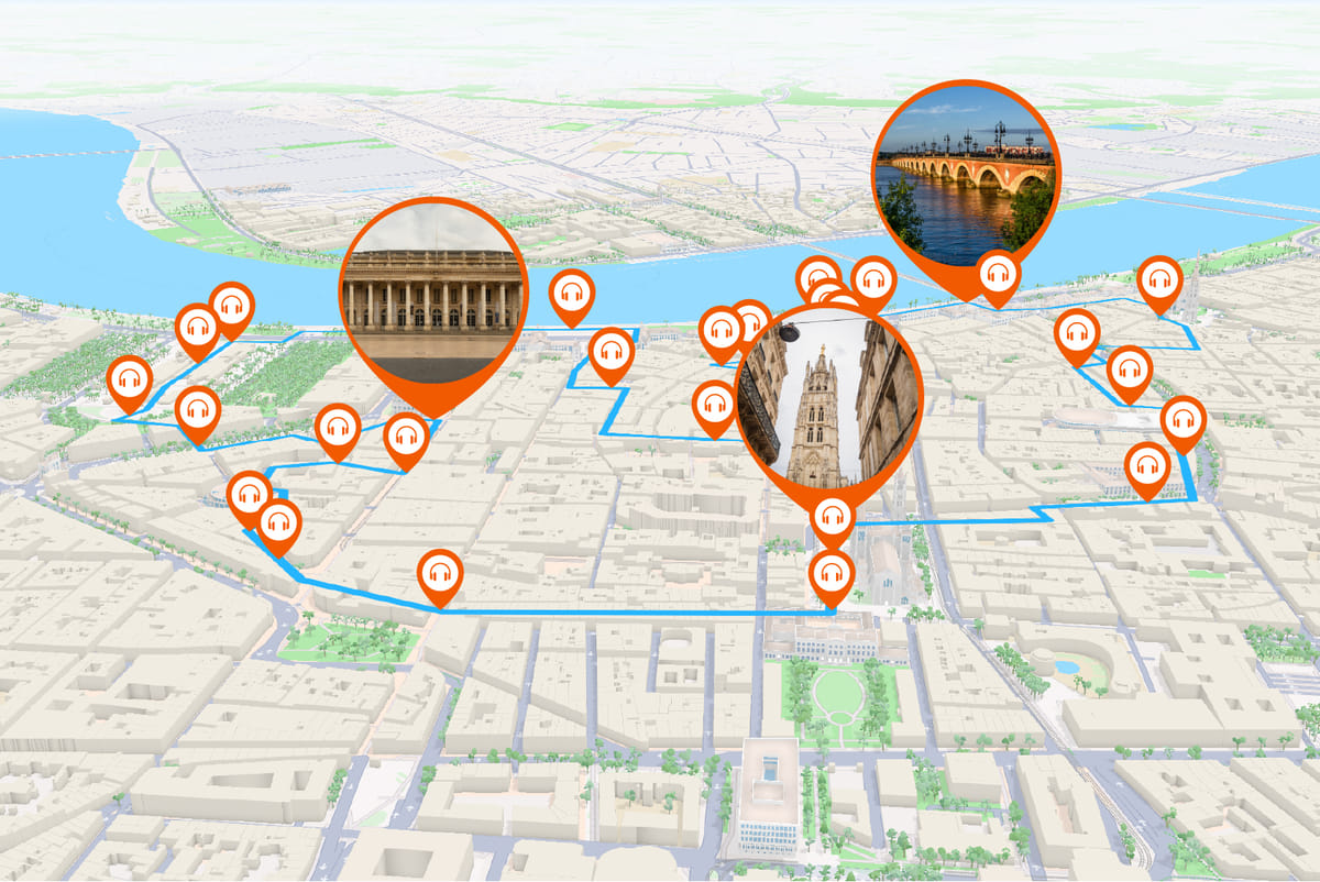 Experience Bordeaux in a different way thanks to our unique audioguided tour and let yourself be surprised at each alley, each pier, each facade — or at each reflection in the water! At your own pace, without time constraints, dive into the heart of this “Sleeping Beauty” that has become vibrant, through a route designed to reveal all the richness, history and secrets of Bordeaux. Guided by an interactive 3D map and immersive audio commentary, you will discover not only the must-see places, but also hidden treasures — far from traditional tourist circuits.