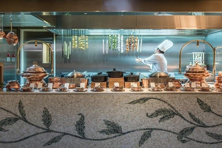 The expansive spaces and exotic mosaic patterns that adorn the walls and pillars are the highlights of Giardino. The tribute to nature continues in the selection of local market ingredients that feature in the live-cooking stations, where guests can interact with our chefs and sample authentic cuisines from around the world.