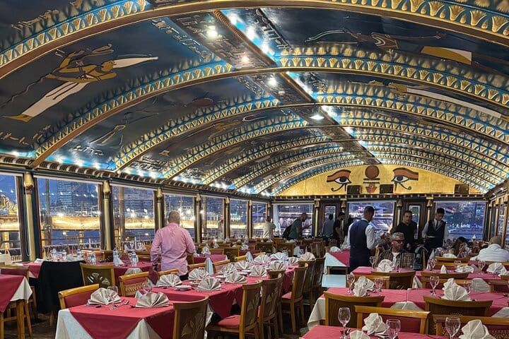 With hotel pickup included, comfortable seating, and a fully organized evening, this cruise is more than a meal — it’s an unforgettable adventure on the Nile, combining scenic views, fine dining, and entertainment for a magical Cairo experience.