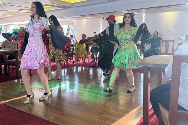 Relax to the gentle river breeze as live traditional Egyptian music and dance performances fill the air, creating an enchanting atmosphere that turns dinner into a celebration of Egypt’s rich culture and charm.