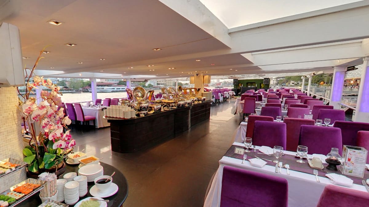 Take in Bangkok's most famous and sacred landmarks from a scenic viewpoint: aboard the Chao Phraya Princess Cruise, swiftly gliding the night. For a unique cruise ride, the dinner cruise features a grandiose buffet with your favorite Thai dishes, as well as a selection of international treats, spread out for your enjoyment. Along with a live band to grace your dinner with throwback tunes and a dose of nostalgia, the Chao Phraya Princess Cruise promises no less than an entertaining and memorable night for sure. Take on the journey with friends, family, and/or your partner: folks of all ages are welcome!