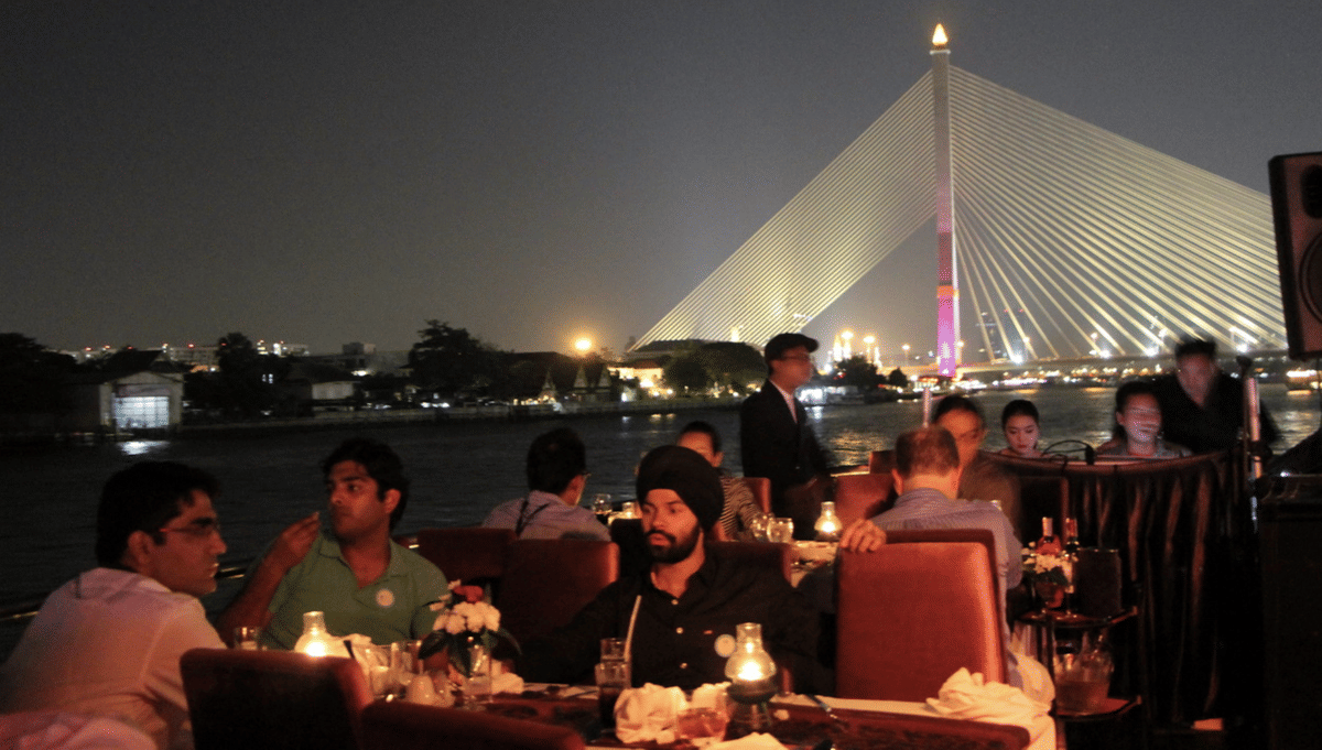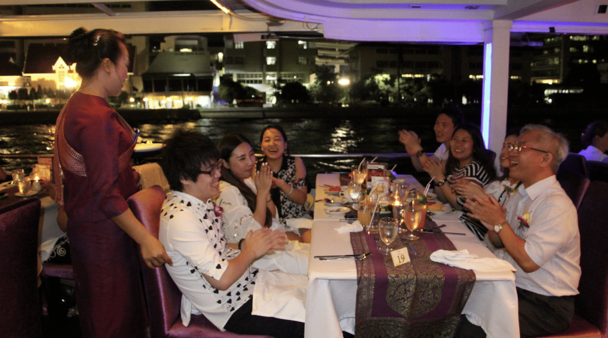 We provide you a Superb Thai and International Buffet with an offer of coffee and tea. Enjoy the beautiful night scenery on both side of Chaophraya River. Sightseeing and get fascinated by the humble Thai way of life along the riverbanks. Enjoy the harmonious Live Music with professional singers and also a traditional Thai Greeting Dance.