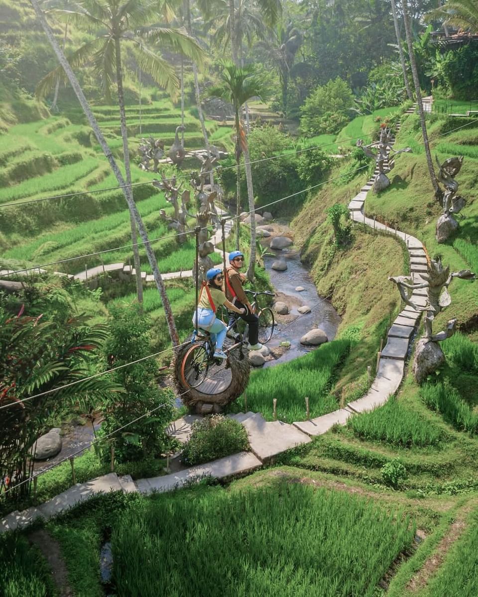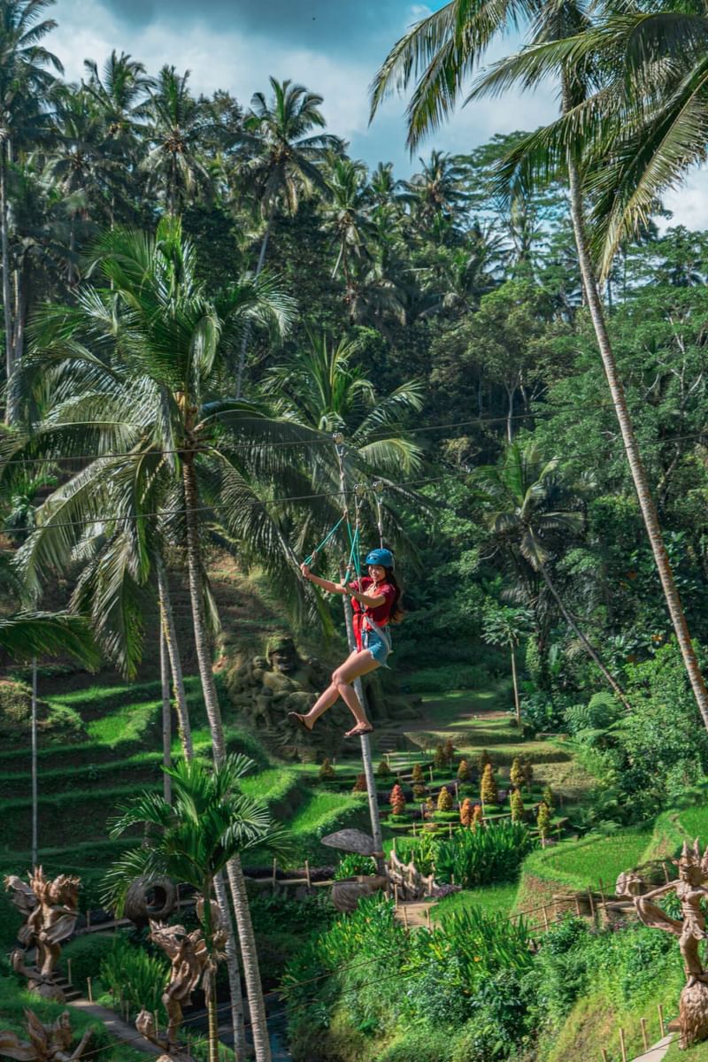 Choosing one of your best couple adrenaline experience at Alas Harum like the flying fox, sky bike, angel swing, or extreme swing promises a thrilling adventure. Feel the rush of wind as you zip through lush forests on the flying fox or pedal together on a suspended sky bike with breathtaking views below. Alternatively, embrace the adrenaline on the angel swing, soaring over jungle canopies, or plunge into the abyss on the extreme swing, freefalling with your partner against Bali's stunning backdrop. These exhilarating options offer couples a perfect blend of excitement and scenic beauty, ensuring an unforgettable bonding experience in Bali's tropical paradise