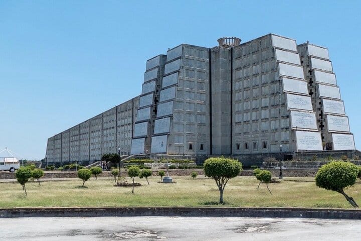 The Columbus Lighthouse in Santo Domingo, Dominican Republic, is a cross-shaped monument built to commemorate the fifth centenary of the discovery of America by Christopher Columbus. It supposedly houses the remains of Christopher Columbus.