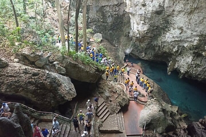 Los Tres Ojos National Park is an impressive system of caves and underground lakes located in Santo Domingo, Dominican Republic. It consists of three natural lakes, connected to each other, surrounded by rock formations and lush vegetation. Its name comes from the three main lakes: The First Eye, The Second Eye and The Third Eye. It is a popular destination for nature lovers.