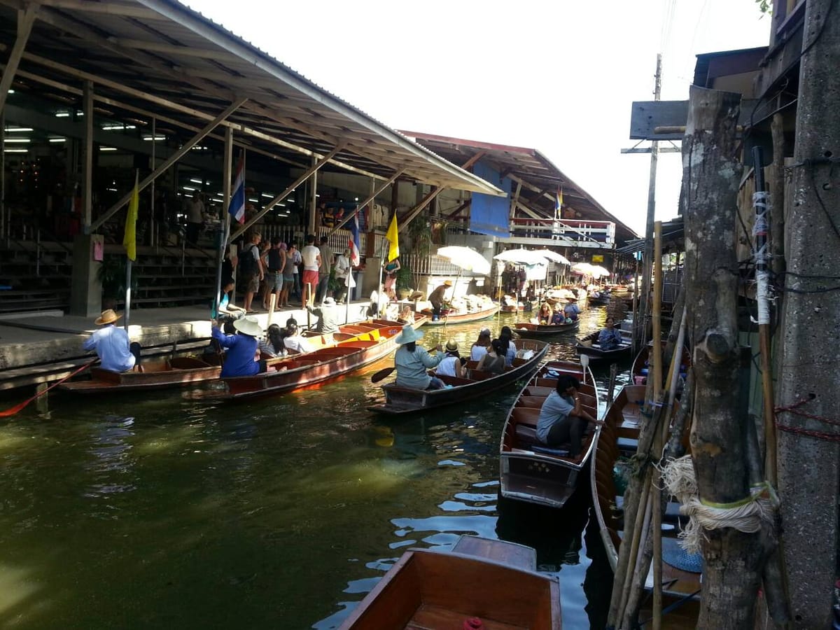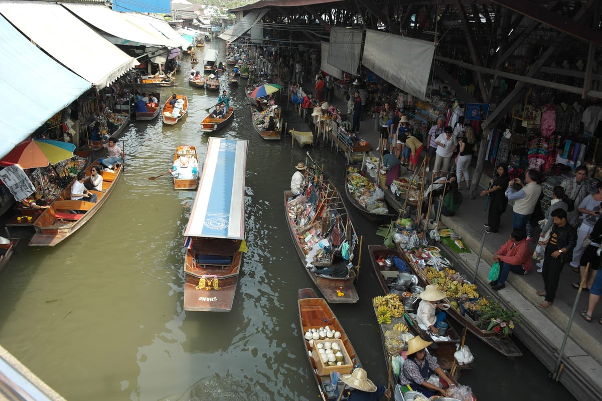 Continue your trip by boarding a longtail boat for a ride along narrow canals to the floating market. See the local houses lining the canals and take a quick glance at their way of living, while you pass by. When you arrive at the market, see the amazing array of vendors in their boats, selling fresh products, from fruits and vegetables to prepared dishes.