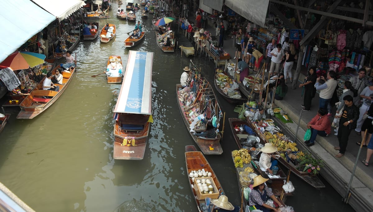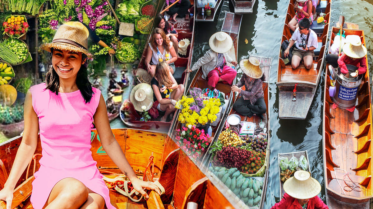 Visit Damnoen Saduak Floating Market, a top attraction located only 1.5 hours from Bangkok. Experience the colorful scene of vendors selling products from their boats.