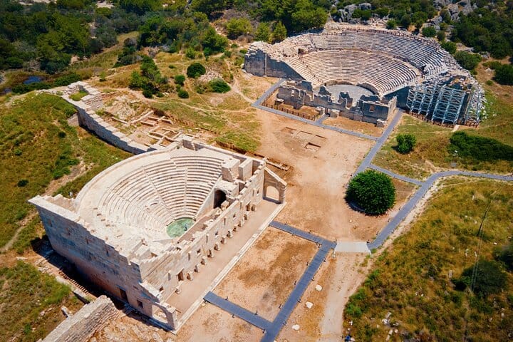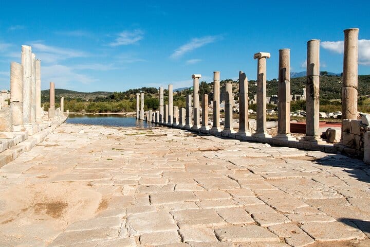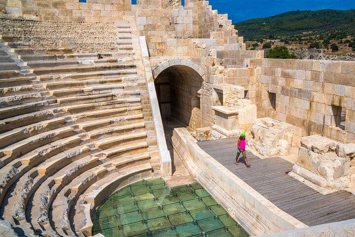 travelers will explore the vast archaeological site, including the restored parliament building (bouleuterion), Roman theater, main street, baths, and monumental gate. Patara was a major Lycian port city and an important political center. After the guided visit, guests can enjoy free time at nearby Patara Beach, known for its wide golden sand and natural beauty—perfect for relaxing or swimming.