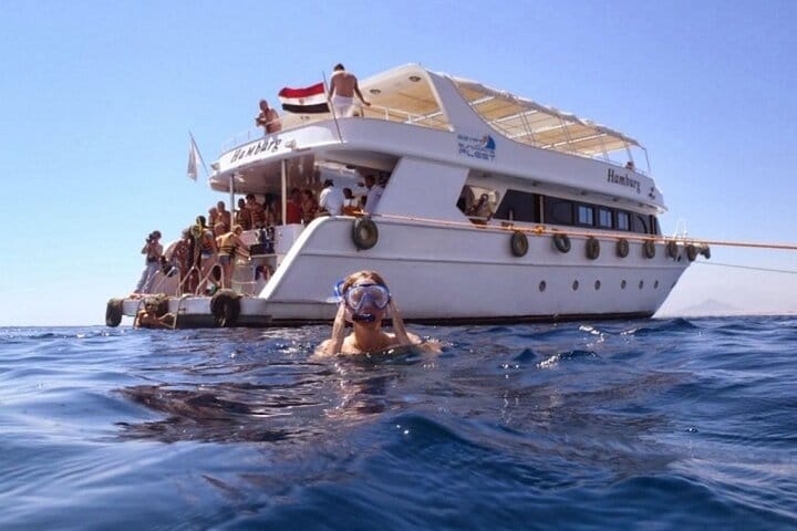 Our representative will pick you from your hotel in Sharm-El-Sheikh and travel by bus to the port. Embark on a yacht cruise towards Ras Mohammed National Park which is located only 25 km away at the border between the Akaba and Suez bays. The White Island is 28 km away from Sharm el-Sheikh. The boat trip lasts almost all day and is divided into 3 45-minute diving , at each of which participants will have the opportunity to enjoy the beauty of the coral reefs, bright colorful fish, and many other marine inhabitants of the Red Sea. All 3 stops will pass along the coast of Ras Mohammed. You will have the chance to make 1 or 2 dives at these stops depending on your experience level. After the second stop, enjoy a lunch of chicken and meat shish kebabs served on board. Then Return to your hotel.