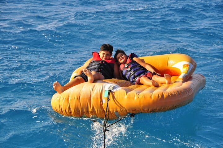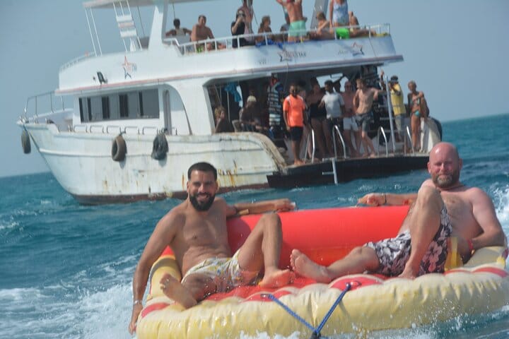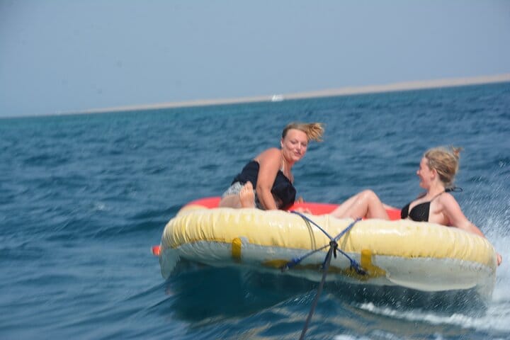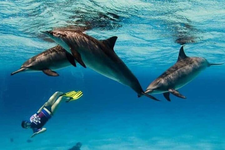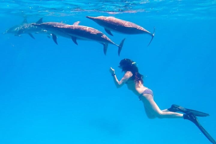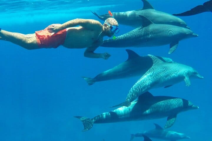Join us for an unforgettable Dolphin House trip with air-conditioned hotel pickup and drop-off. Sail into the Red Sea to witness dolphins in their natural habitat, snorkel vibrant reefs, and enjoy thrilling water sports rides. Savor a delicious onboard lunch with fresh, sea-inspired dishes.