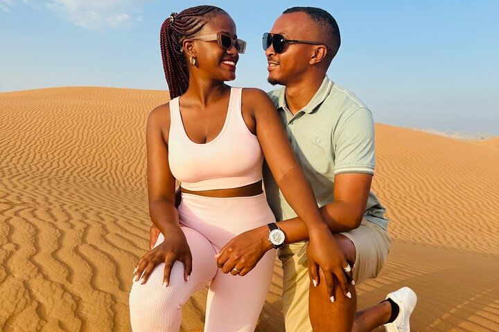 Our day in the Dubai desert was filled with thrilling moments, from zipping across the dunes on ATVs to the excitement of riding buggies. The camel ride offered a unique perspective of the stunning landscape, while the BBQ dinner under the stars was a perfect way to unwind after our adventures. We especially loved the desert sunset, which painted the sky in incredible hues, making it truly memorable. One suggestion for improvement would be to extend the time spent at dinner, as it felt a bit rushed. Overall, it was a fantastic way to experience the beauty of the desert with friends.