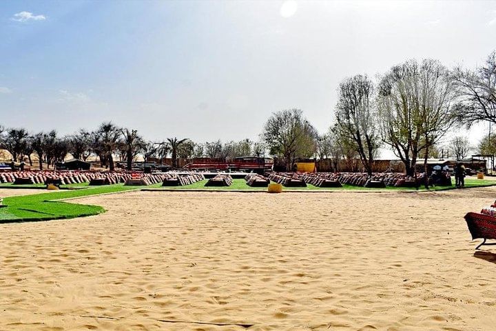 Relax yourself on sofas inside Camp. Henna Painting & Tattoo is also available. Unlimited Refreshment with Coffee, Tea, Water and Soft Drinks. Different Entertainment Shows which are Different Belly Dance, Traditional Tanura Dance, Fire Show. Delicious Dishes and BBQ Dinner with Veg & Non Veg.