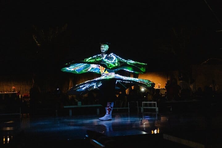 As the sun sets, visit a traditional desert camp to enjoy Arabic hospitality, refreshments, and a BBQ dinner with vegetarian and non-vegetarian options. The evening includes live entertainment, a camel ride, henna painting, and cultural photo opportunities.