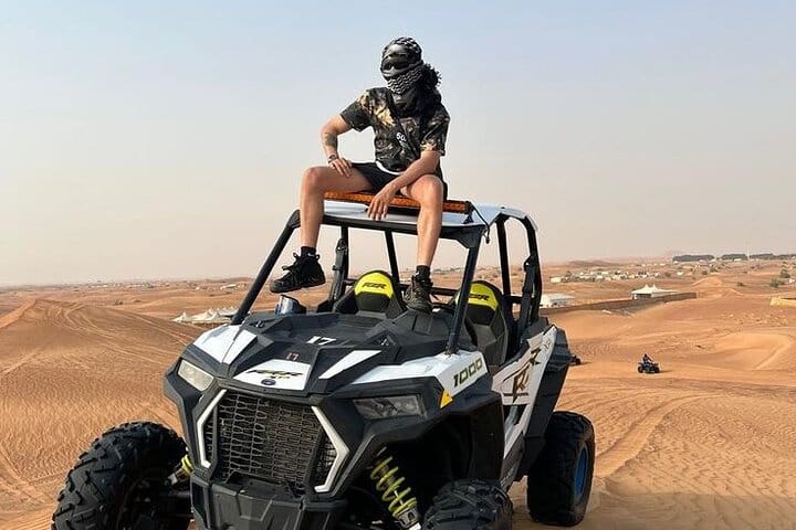 Enjoy hotel pickup from Dubai and travel to the famous Lahbab Red Dunes. After a safety briefing, ride a powerful dune buggy across the red sands with professional guidance. Stop for photos, try sandboarding, and enjoy the peaceful desert scenery.