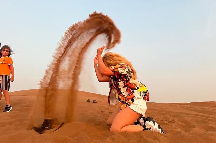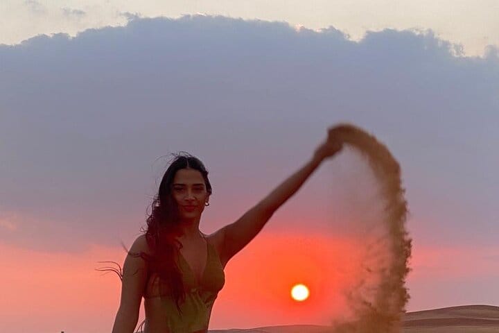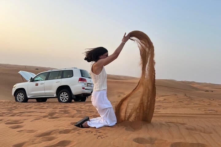 Your journey begins with pickup in a comfortable 4x4 vehicle, followed by an exciting 30-minute dune bashing adventure across the red sand dunes. As the sun begins to set, you’ll have the opportunity to capture stunning sunset photos