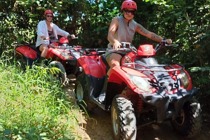 Bali ATV Ride with Waterfall Track. Jump into a Bali quad bike and follow our professional guide along a challenging track, suitable for all skill levels. Ride through Pictures landscape of rice fields, waterfall, River, jungle, tunnel, and lush riverside flanked by a traditional Balinese village. Bali ATV is powerful automatic 250 cc really easy to ride Men Or women can Ride this vehicle. We have top-of-the-line equipment and well-trained guides to make sure you have a safe Trip. Including The Best Facilities, Equipment, Safety, and Food