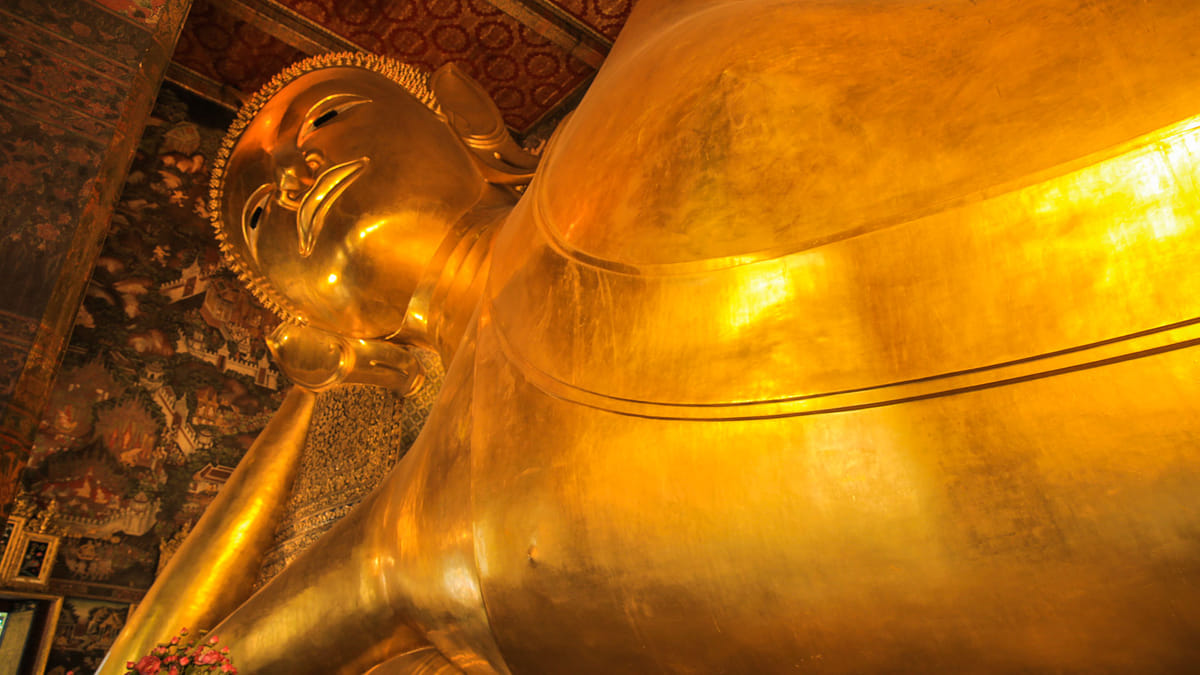 Wat Pho (the Temple of the Reclining Buddha), or Wat Phra Chetuphon, is located behind the Temple of the Emerald Buddha and a must-do for any first-time visitor in Bangkok. It's one of the largest temple complexes in the city and famed for its giant reclining Buddha that measures 46 metres long and is covered in gold leaf. It’s an easy ten minute walk between here and the Grand Palace, and we recommend coming to Wat Pho second, because even though the golden Buddha here is just as popular many people don’t take the time to wander around the rest of the complex so the experience tends to be far more relaxing.