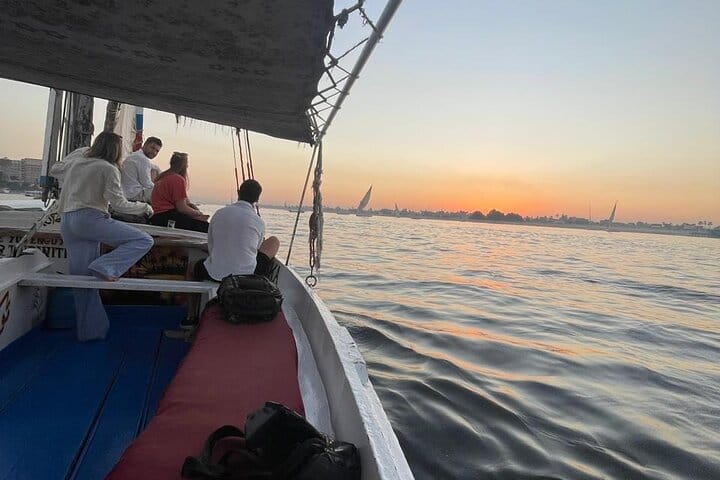 Furthermore after the historical part in the tour done, will transfer to take a cruise along the historic Nile River in a traditional felucca boat and see Luxor’s sights from the water. sip tea while witnessing the breathtaking sunset over Luxor. before the sailing starts from the Felucca dock to begin enjoy a 90 minutes cruise, taking in the tranquil scenery as the sun sets,