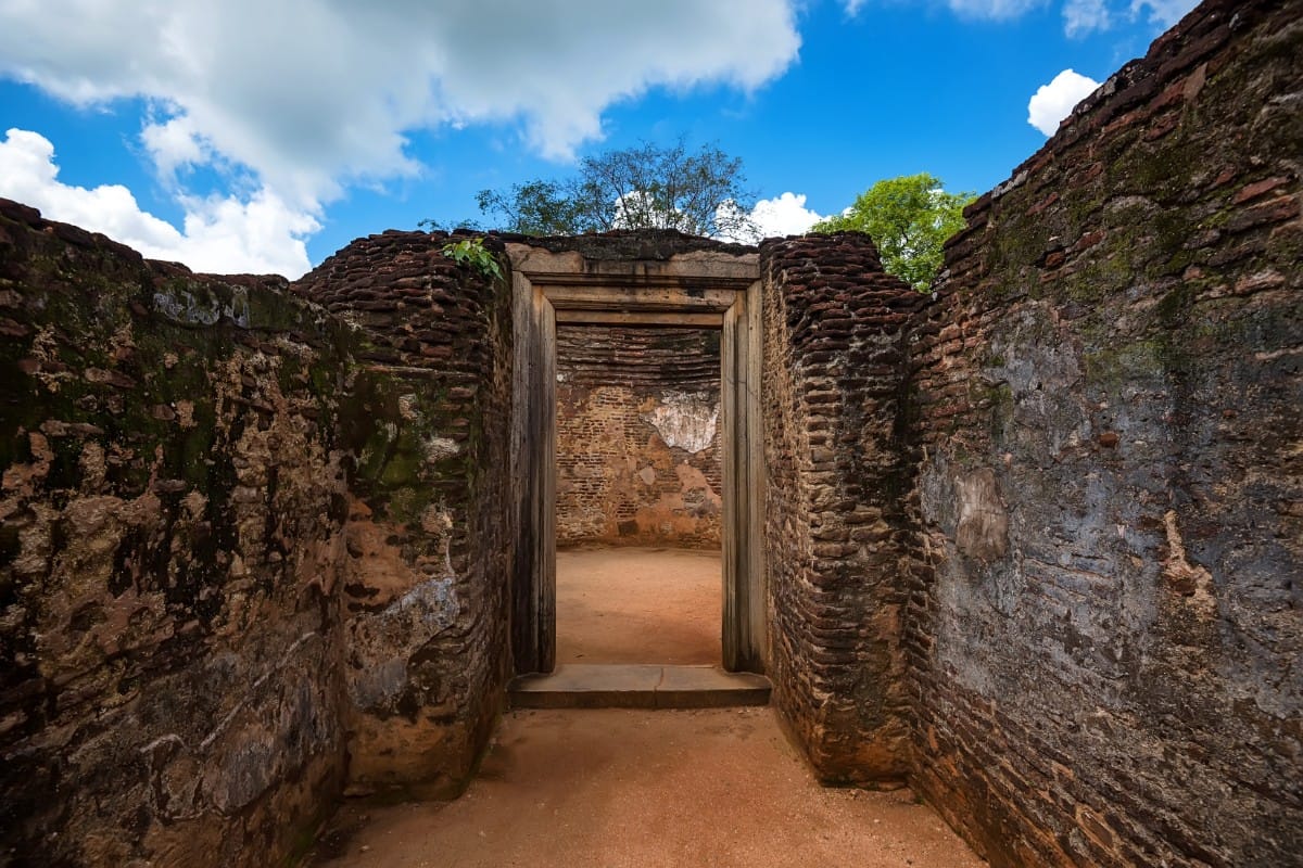 An entrance of the Polonnaruwa Vatadage. A vaṭadāge is a type of Buddhist structure found in Sri Lanka.