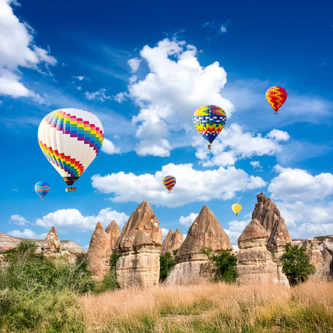 Today is dedicated to discovering Cappadocia’s natural and cultural treasures. Visit the Göreme Open-Air Museum, featuring ancient rock-cut churches with stunning frescoes, and enjoy panoramic views from Uçhisar Castle. Continue to the Devrent Valley, famous for its animal-shaped rock formations, and explore local artisan workshops where traditional pottery and carpets are still made.