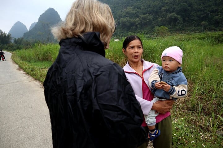 13:30pm – 14:30pm: Visit Ban Gioc Waterfall with water flowing down from above to whitewash a river, next to a fragrant rice field with a cool breeze, Take a boat closer to the waterfall, getting the drops of water splashing on people it make you goosebumps little bit. In the middle of the river is the border of Vietnam - China, a feeling can't be more happier when you have traveled nearly 100Km to this place.