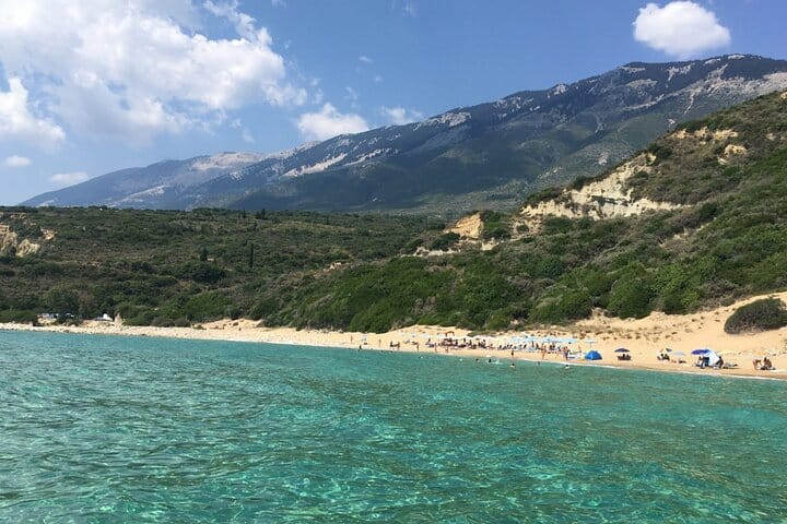 Your adventure begins at 10:00 AM from Argostoli Port. We’ll cruise through the crystal-blue waters of South Kefalonia, exploring hidden coves, dramatic cliffs, rocky islets, and remote beaches accessible only by sea. During the trip, we’ll make two swimming stops where you can dive into the clear, turquoise waters.