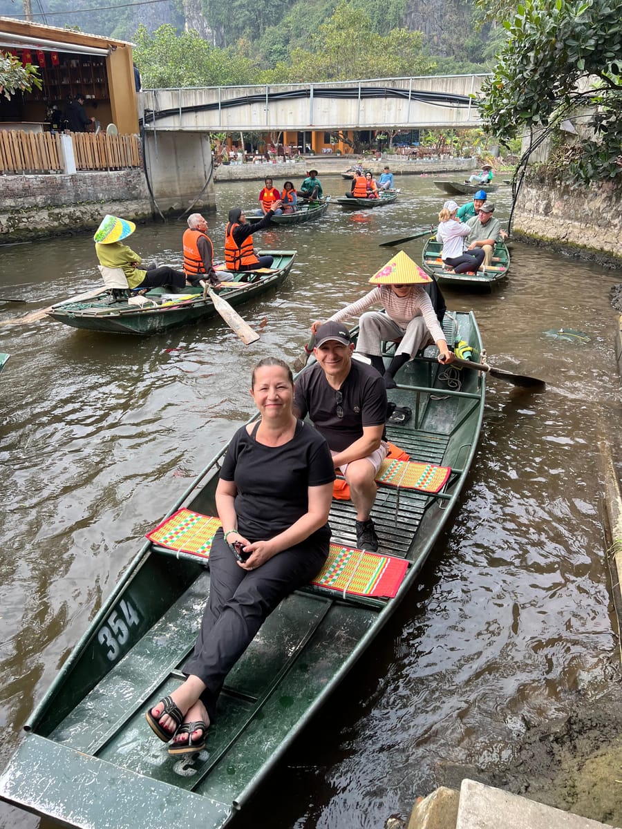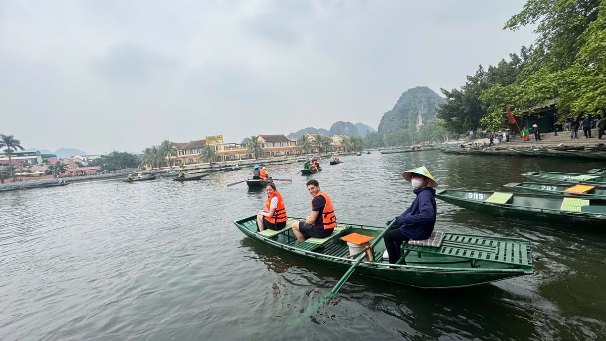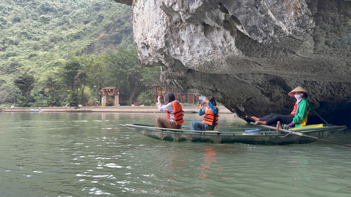 Tam Coc, often called the "Ha Long Bay on land," is a stunning natural attraction in Ninh Binh, known for its scenic river journey through limestone karsts, caves, and lush rice paddies. Visitors explore Tam Coc by boat, typically rowed by locals using their feet, as they glide along the Ngo Dong River. The name "Tam Coc" means "three caves," referring to the Hang Ca, Hang Hai, and Hang Ba caves that the boats pass through. The landscape is especially beautiful during the rice planting and harvesting seasons, when the fields are vibrant green or golden. Tam Coc offers a peaceful and picturesque experience, blending natural beauty with local culture.