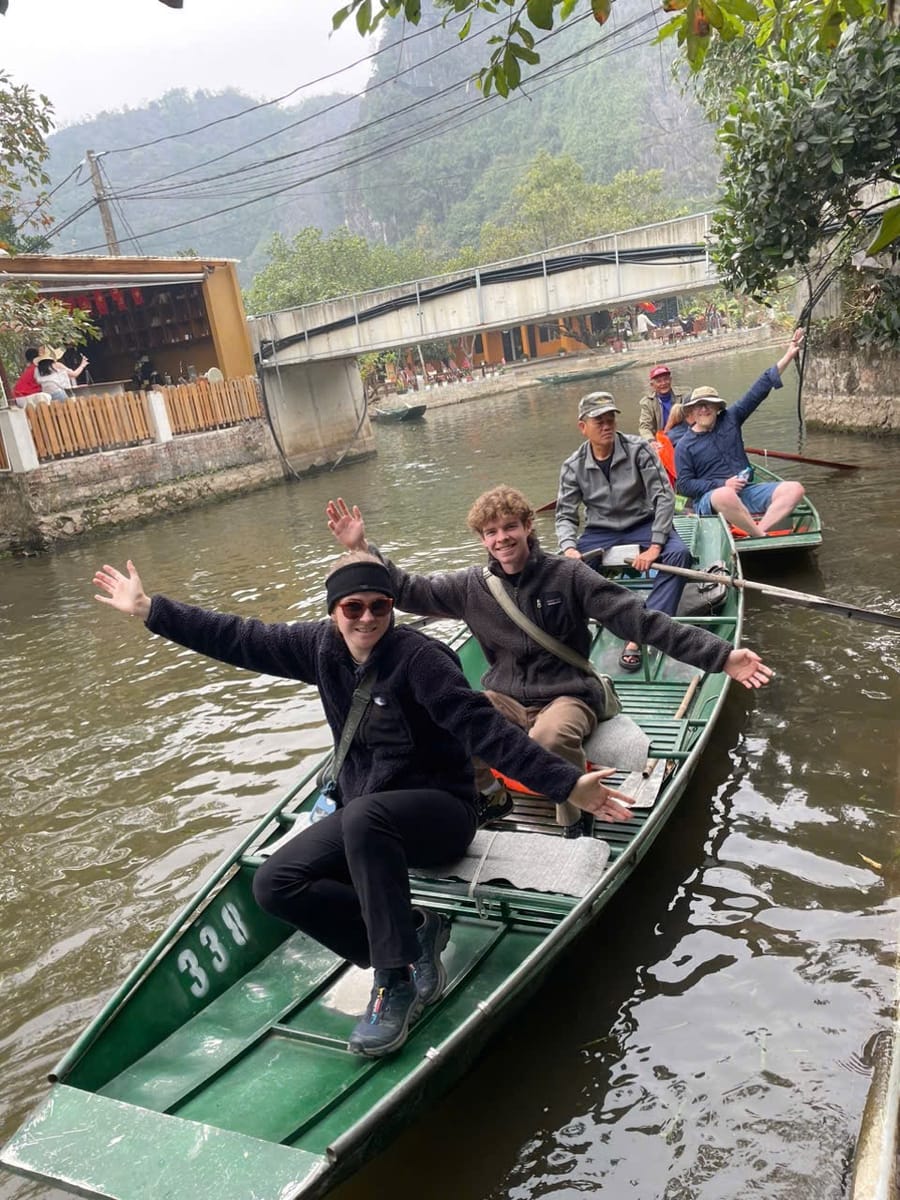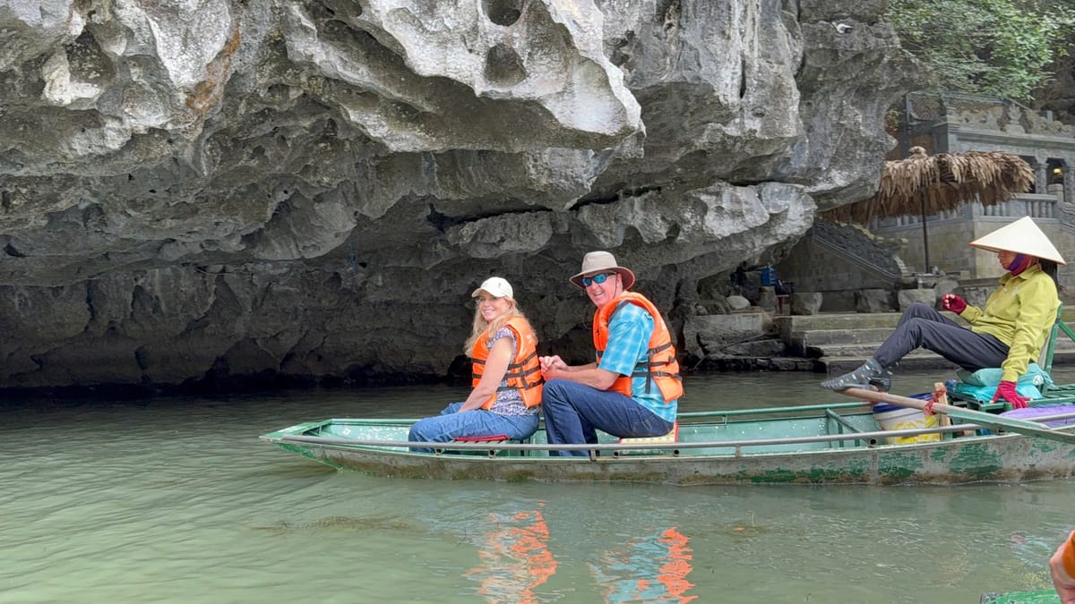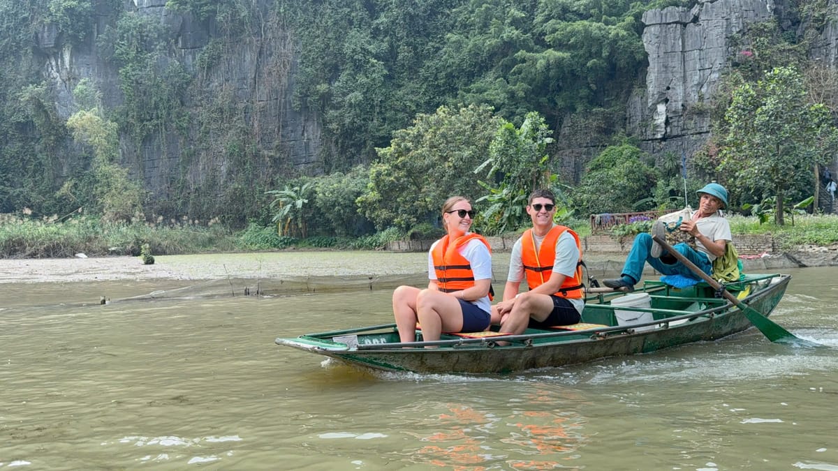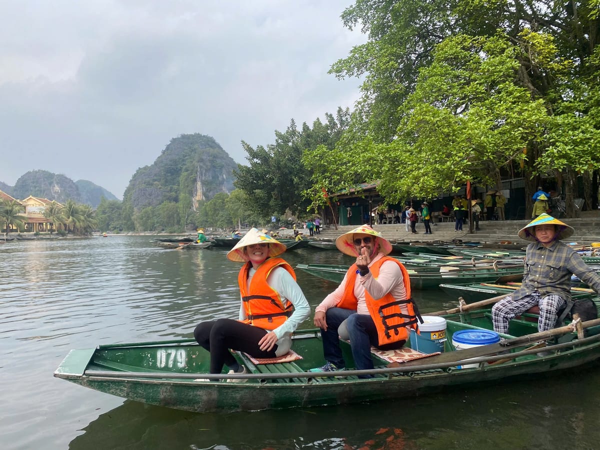 Tam Coc, often called the "Ha Long Bay on land," is a stunning natural attraction in Ninh Binh, known for its scenic river journey through limestone karsts, caves, and lush rice paddies. Visitors explore Tam Coc by boat, typically rowed by locals using their feet, as they glide along the Ngo Dong River. The name "Tam Coc" means "three caves," referring to the Hang Ca, Hang Hai, and Hang Ba caves that the boats pass through. The landscape is especially beautiful during the rice planting and harvesting seasons, when the fields are vibrant green or golden. Tam Coc offers a peaceful and picturesque experience, blending natural beauty with local culture.