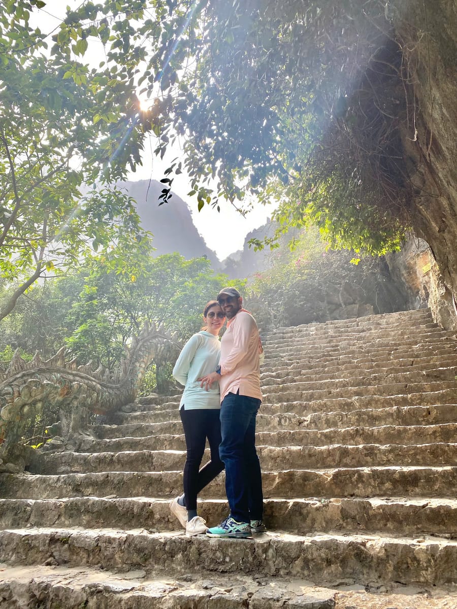 Mua Cave, located in Ninh Binh, is a popular destination known for its stunning panoramic views of the Tam Coc rice fields and the surrounding karst landscape. The highlight of Mua Cave is the 500-step climb up to the peak of Mua Mountain, where visitors are rewarded with breathtaking views of the countryside and the winding Ngo Dong River. The cave itself is small but is overshadowed by the beauty of the scenery at the top. It is often referred to as "the Great Wall of Vietnam" due to the stone steps leading to the summit. Mua Cave is a perfect spot for nature lovers and photographers.