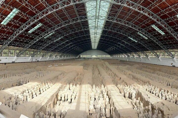 The museum covers an area of 16,300 square meters, divided into three sections:No.1 Pit,No.2 Pit,and No. 3 Pit respectively.No.1 Pit is the largest,there are columns of soldiers at the front,followed by war chariots at the back.No.2 Pit, Contained over a thousand warriors and 90 chariots of wood. it looked like to be the command center of the armed forces. After your guide will take you to a nice local restaurant where you can enjoy some well-known local food. The tour end, you will be transferred back to your hotel.