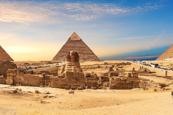 Take a tour from Cairo with a trained Egyptologist as your personal guide. Visit the Great Pyramids, the necropolis of Sakkara, the step Pyramid of Zoser, Memphis, and the enigmatic Sphinx on this full day tour.